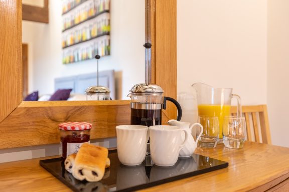 The entire complex is warmed by a renewable biomass system, and guests can make use of our on‑site EV charging point. On arrival, you’ll be greeted with locally collected whole milk, free‑range eggs from our own farm and the chance to wander our small orchard — gentle touches that reflect our connection to the land and the people who care for it.
